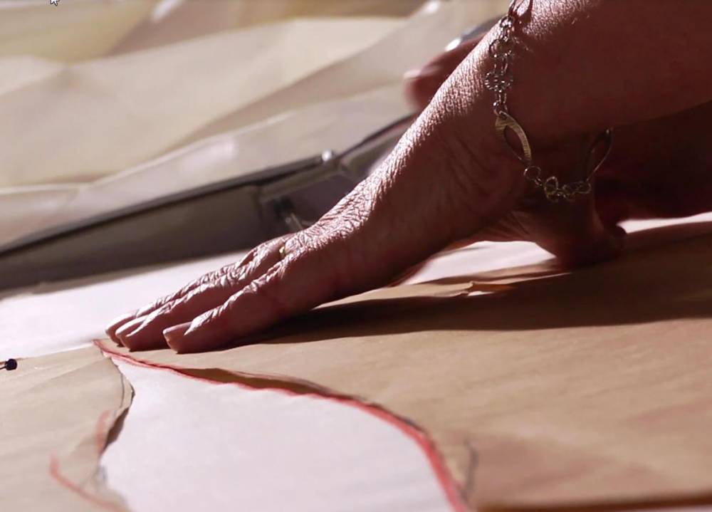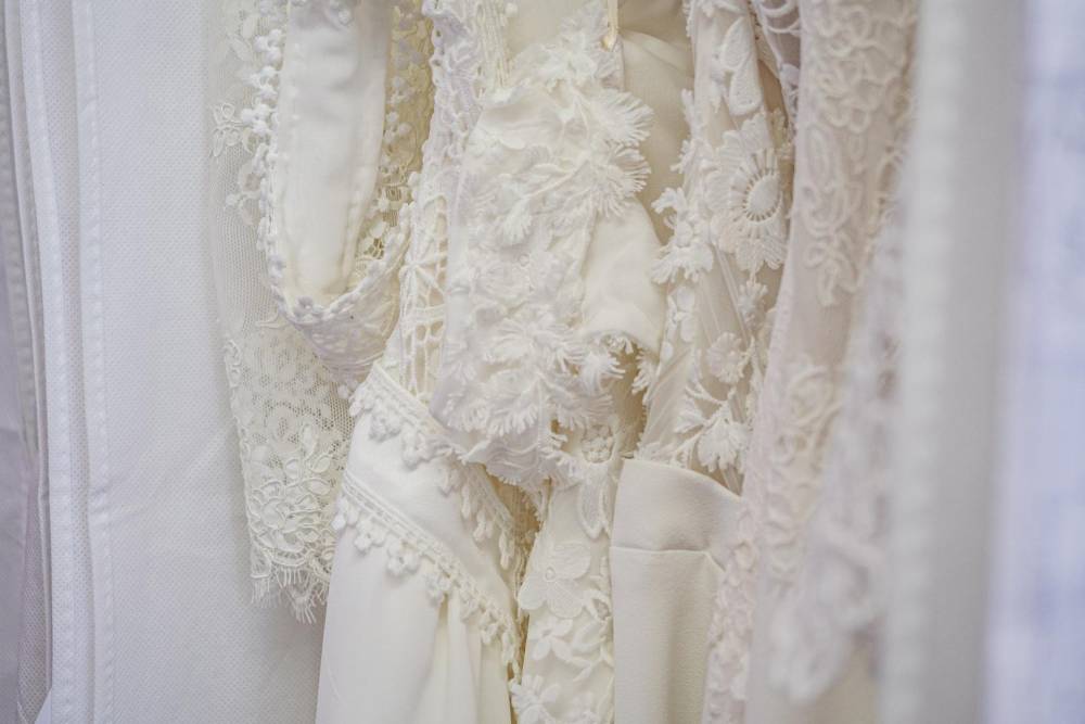 Vient ensuite le premier essayage en tissu de coton. Plusieurs rendez-vous peuvent s’ensuivre pour les ajustements jusqu’à ce que la robe prenne forme. À l’essayage final, nous vérifierons les moindres détails. Nous nous assurons que la robe est bien ajustée.